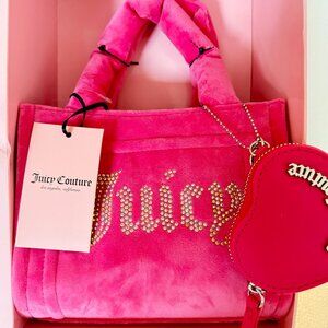 NIB JUICY COUTURE FREE LOVE BIG SPENDER 3 PIECE SET PINK HEART KEY FOB