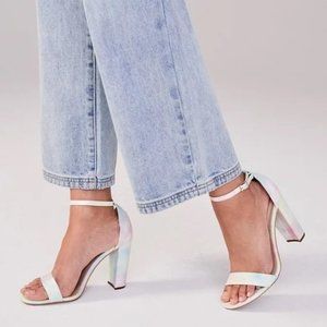 NIB JUSTFAB LORELAI PASTEL TIE DYE BLOCK HEELED SANDAL (8.5 & 9)