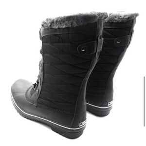 Weather any storm with this winter ready boot. Chilly features a quilted nylon and nubuck upper that keeps your feet dry. The cozy faux-fur lining adds a luxurious touch. Secure every step on slick ground with the nonslip outsole, and stay comfortable all day with the plush memory foam insoles.