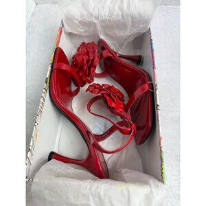 NIB Jeffrey Campbell Flower Power Heels Red Patent Leather Ankle Strap Sz 40