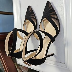 NIB Jessica Simpson Black Supreme Microsuede JP-Negomi3 heels, gold tone back zipper, approx 4" heel, size 6.5M. Excellent new condition, measurements in pics, smoke free home, ships next day. Over 2,800 Poshmark Sales. Bundle and Save!