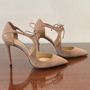 Perfection! Gorgeous Jimmy Choo Vanessa 100 Suede Heels! They are in perfect condition and 100% leather and suede. The color is ballet pink, which is the softest pink, almost a nude color. All in original packaging including box, booklet, and dust bag. This style is extremely hard to find and this color is the most rare. Very feminine, perfect for anything!