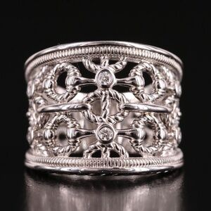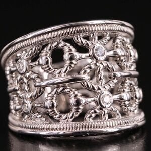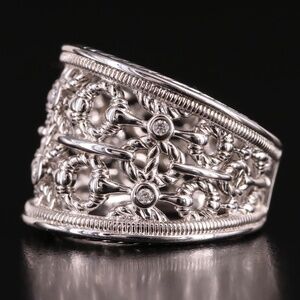 NIB - Judith Ripken Sterling Silver Vienna Wide Band Diamond Ring