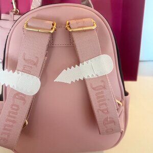 - Details: Pink faux leather handle, adjustable logo straps, and interior Juicy logo lining