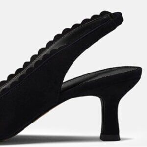 Style: Closed Toe, Elastic Slingback, Scalloped Detail