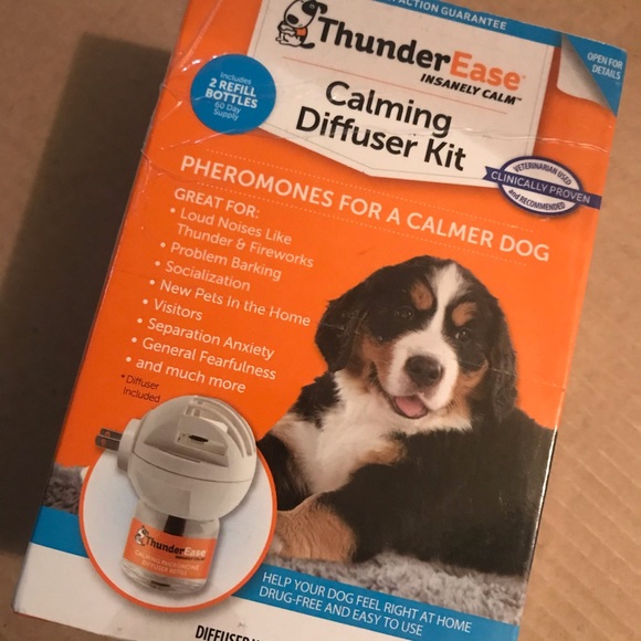 NIB Thunder Ease K9 Calming Diffuser Kit ... pheromones for a calmer dog. 2 refill bottles.