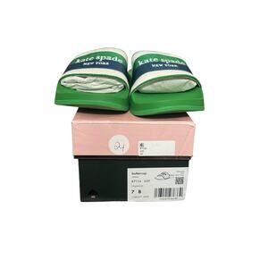 NIB! Kate Spade Buttercup Canvas Green Tropical Pool Slide Sandals - Size 7
