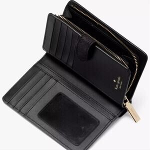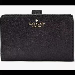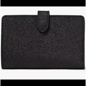 NIB Kate Spade Medium Boxed Glitter Compact Bifold Wallet in Black