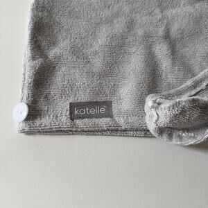 NIB Katelle Spa Hair Towel Wrap Gray Microfiber Button Closure 23” x 9”