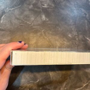Switch plate: almost 5” long x almost 3.5” wide New in packaging but tape and plastic parts have staining/scratches