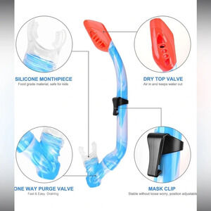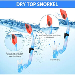 🐳DRY TOP SNORKEL & PURGE VALVE - Kids Snorkeling Set has advanced dry top system. When you descend below the waterline, the snorkel is submerged, the top float valve will close automatically, water will not flow in, so that children will not be choked by water. The purge valve allows for easy clearing and draining water out of the snorkel, no need to blow hard.