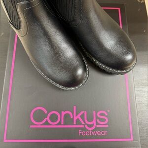 NIB, Knit Ankle, Vegan Leather Slip On Boots by Corkys, Style; Cabin Fever