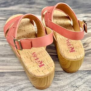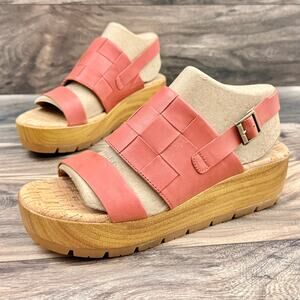 NIB Korks by Kork Ease 9M Fraya Leather Slingback Platform Wedge Sandal Red