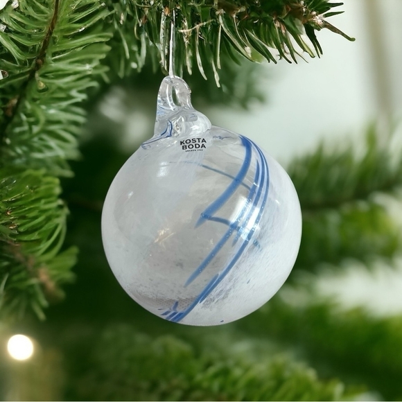 Elevate your holiday decor with this exquisite Kosta Boda ornament. Featuring elegant blue and white hues, it's a perfect addition to your festive collection.