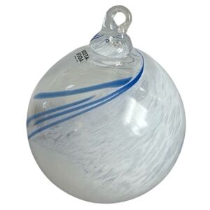 NIB Kosta Boda White Blue Swirl Glass Ornament HandBlown Ball Christmas Ornament