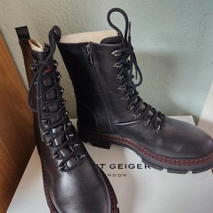 NIB Kurt Geiger London Black Leather Lace or Zip Combat Boots Cool Details!