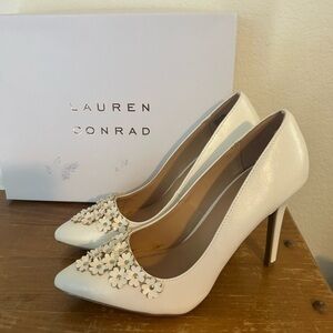 NIB LC Lauren White Pedal High Heels 8.5