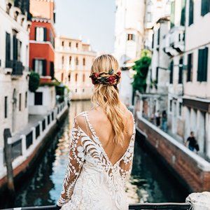Adorned with Swarovski crystals and preserved, fuchsia-pink hydrangea petals, the Ana hairpins will add shine to your style. Slide them nicely into a half updo, chignon or bohemian braid. These can be worn in sets of 3.