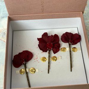 NIB Set of 3 red Ana hairpins famous French designer LES COURONNES DE VICTOIRE sold by BHLDN