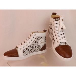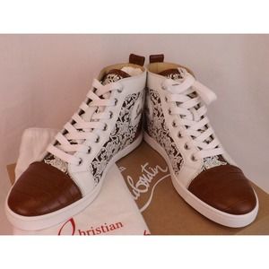 NIB LOUBOUTIN BIP BIP LASER FLORALS TAN CROC PRINT LEATHER HI TOP SNEAKERS 39.5