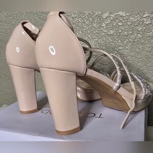 NIB! Ladies Sz. 7.5 TOP MODA Chunky Heels W/glitter Straps