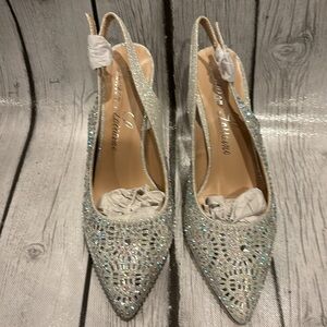Gorgeous rhinestone sling back heels new size 7 Lauren Lorraine Rachel style silver shoes perfect for wedding, prom, club, dancing, pageants, holidays, parties, photography. Amazing glitz and glamour