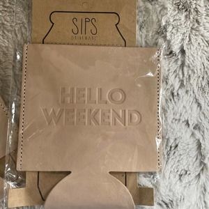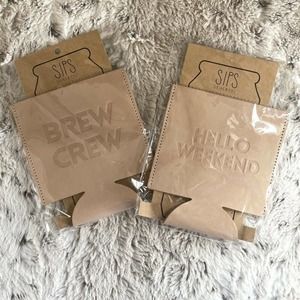 NIB Leather Can Coozies Set of 2 Hello Weekend Brew Crew Party Gifts Alcohol