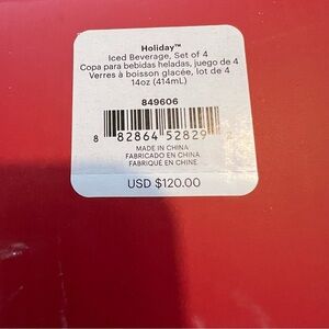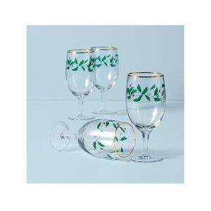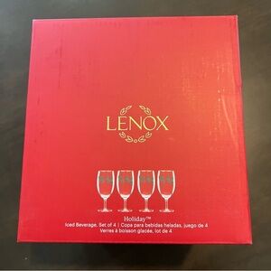 NIB Lenox Holiday 4-Piece Iced Beverage Glasses gold trim hosting Christmas