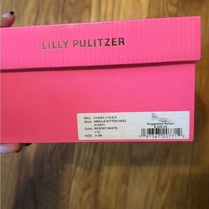NIB // New in the box Lilly Pulitzer Amalia kitten heels are a true to size 8.5 and the color resort white. I bought for my wedding festivities and ended up not wearing them. Only one of the shoes was taken out of the box to try on. Perfect for any bride! // We are moving so all must go! Comes from a smoke free, dog friendly home. Ships same or next day. Thanks for shopping! 💖