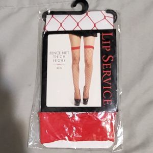 NIB Lip Service OS Red Fence Net Thigh High Tights