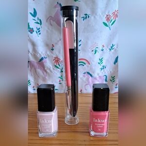 Brand new in box. Two pink polishes each 12ml in the shades Electric Flamingo and Candy Floss. The tool set consists of a dot and detail tool and a high-quality reusable glass nail file.