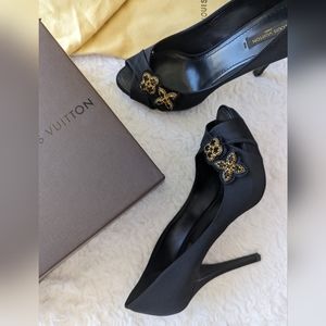 Brand new in box peep toe Louis Vuitton heels. Featuring gorgeous jewel embellishments. Includes box and dust bag.