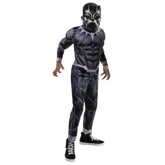 Rule Wakanda with the Black Panther Youth Unisex Child Costume. Inspired by King T'Challa’s heroic appearance, this full-bodied jumpsuit will transform you into the legendary monarch. It’s cut from poly jersey, stuffed with polyfill throughout, and features a printed design. It also includes a mask of T'Challa’s Black Panther mask to help you lead the nation. Collect this Black Panther Youth Costume and ascend the throne. Officially licensed by Marvel.
