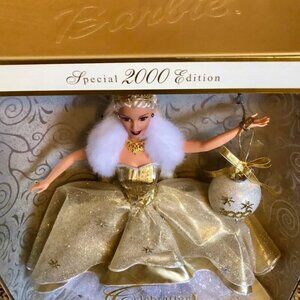 *This Beautiful Celebration Barbie is absolutely stunningly adorned in her golden gown and holding a 2000 New Year Millennium Ornament