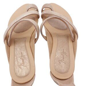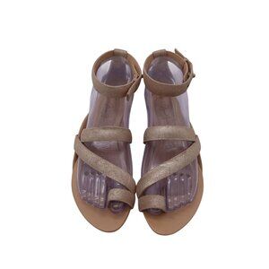 NIB MAX Azria Freja Flat Sandals Sz 36.5 Gold Metallic Strappy Ankle Strap