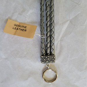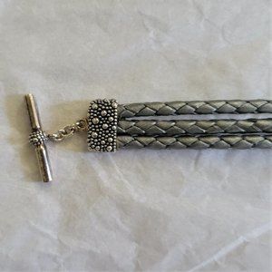 This is a lovely gray leather 3 strand bracelet from Michael Dawkins.