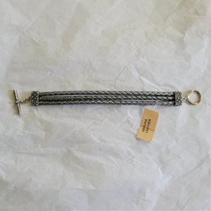 NIB MICHAEL DAWKINS Starry Night Gray Leather Sterling Silver Toggle Bracelet