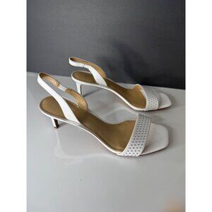 NIB MICHAEL Michael Kors Mila Leather Sandals Heels Size 10 Optic White