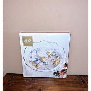 NIB MIKASA Ice Skating Bears Chistmas Glass Cookie Serving Plate Platter…