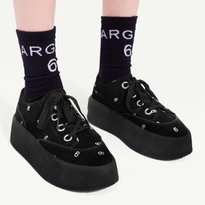 NIB MM6 MAISON MARGIELA Black Pewter Shell-Trimmed Suede Platform Sneakers sz 39