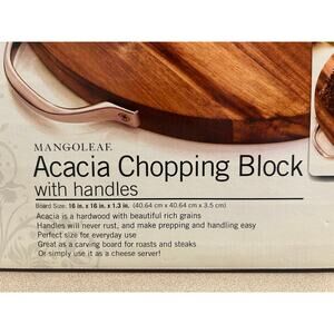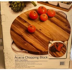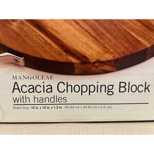 NIB Mangoleaf Acacia Chopping Block W/ handles 100% natural premium Acacia wood