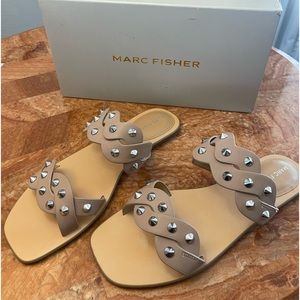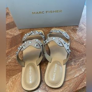 NIB Marc Fisher | Tan Bodil Studded Slide Sandal Natural Size 8.5M ZL840