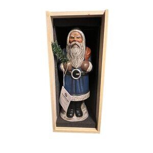 NIB Marolin PaperMache Blue 13" Limited Edition Santa Claus Feather Tree Figure