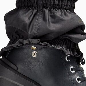 Removable knee-high gaiters with zipper entry, lace closure, contrast stitch details and hardware snaps