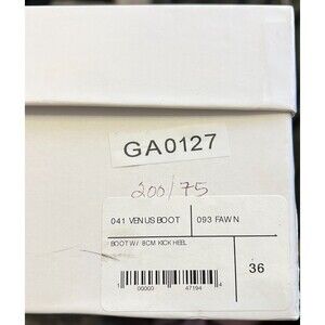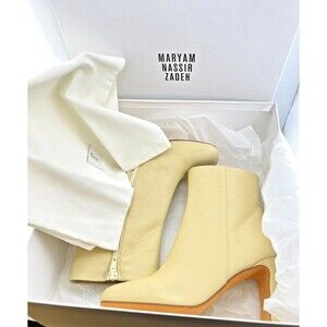 New in box, with dust bag, Venus Boots in color "Fawn" by Maryam Nassir Zadeh. Made in Italy. Women's EU 36 or US 5.5. Has a 3" heel. Measures 8" from bottom of foot to ankle opening. Fawn color is a yellowish beige color.