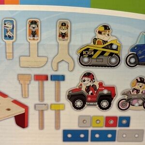Match, build, and play with PAW Patrol by using wooden character tools and hardware to piece together projects – match assembly cards, attach to scene cards, or create unique projects