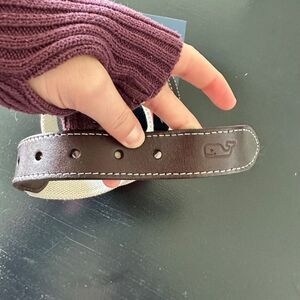 NIB Men’s Vineyard Vines Pink Cream Silk Cotton Leather Sailboat Belt - Size 30