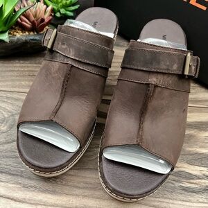 NIB Merrell Halendi Slide Wedge Sandal Full Grain Leather Brown Bracken