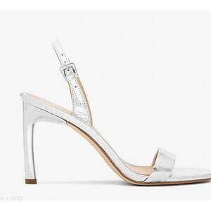 Step out in style with these gorgeous MICHAEL Michael Kors Kasia sandals! These slingbacks feature a crackled metallic silver leather upper and a slender 3-1/2" heel for a leg-lengthening effect.