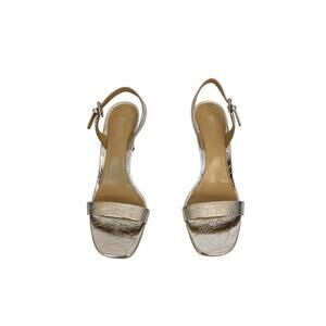 NIB Michael Kors Kasia Crackled Metallic Leather Sandal Silver 8M